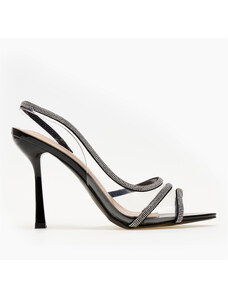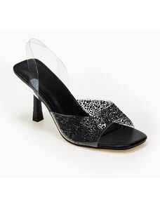 Issue Ψηλά πέδιλα με χοντρό τακούνι, κλειστή φτέρνα και στρας - Μαύρο - 032011