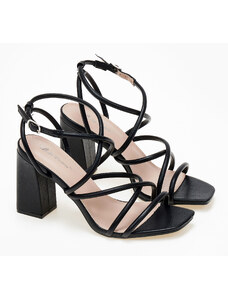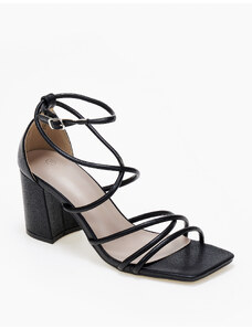 Issue Γυναικεία πέδιλα με λεπτό τακούνι και στρογγυλό τελείωμα - Μαύρο - 032016