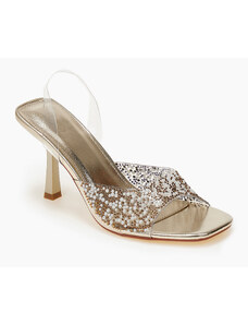 Issue Γυναικεία πέδιλα με λεπτό τακούνι και στρογγυλό τελείωμα - Bronze - 050016