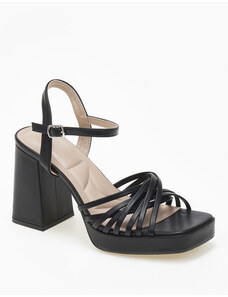 Issue Ψηλά γυναικεία πέδιλα με χοντρό τακούνι και φιάπα - Μαύρο - 032012