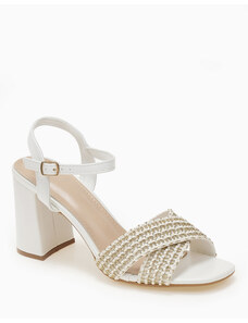 Issue Πέδιλα μ χοντρό τακούνι και χιαστί λουράκια. - Λευκό - 030013