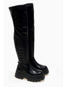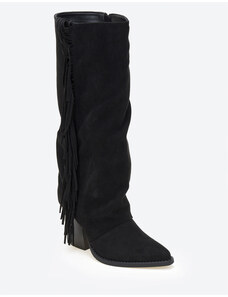 Issue Μπότες με suede υφή και χοντρό τακούνι - Μαύρο - 032012