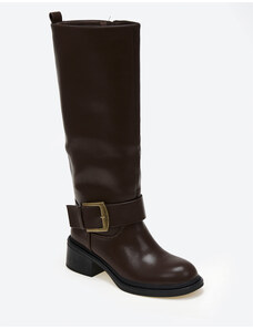 Issue Μπότες με χαμηλό χοντρό τακούνι και διακοσμητικό ζωνάκι - Καφέ - 025011