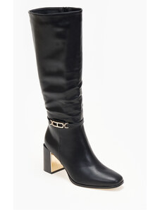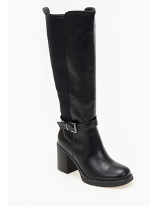 Issue Μπότες με χοντρό τακούνι και διακοσμήτικο ζωνάκι - Μαύρο - 032011