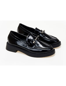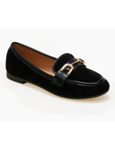 issue Γυναικεία χαμηλά loafers με suede υφή - Μαύρο - 032011
