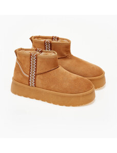 Issue Μποτάκια δίσολα με γούνα - Κάμελ - 024011