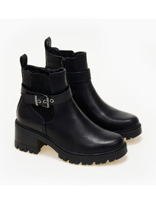 Issue Μποτάκια με χοντρό τακούνι και διακοσμητικό ζωνάκι - Καφέ - 025011