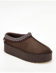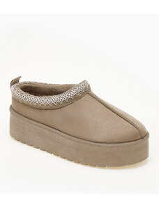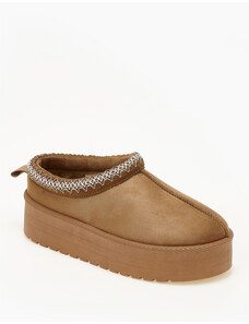 Issue Παντόφλες δίσολες με κέντημα και εσωτερική γούνα - Κάμελ - 024011