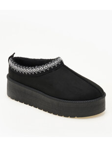 Issue Παντόφλες δίσολες με κέντημα και εσωτερική γούνα - Μαύρο - 032011
