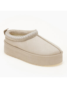 Issue Δίσολες παντόφλες με γούνα και κέντημα - Μπεζ - 035012