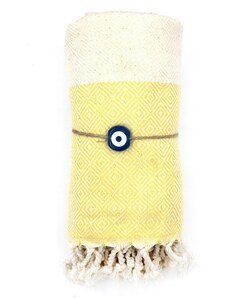 V-STORE 0010-05 Πετσέτα Χαμάμ Pestemal Με Κρόσσια Κίτρινη 180x100cm