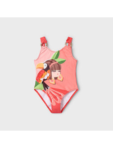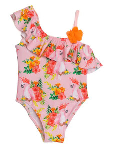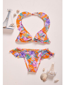 Comfort Μαγιό παιδικό σετ μπικίνι floral print με βολάν - Πορτοκαλί