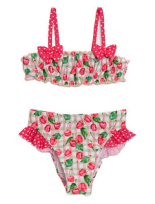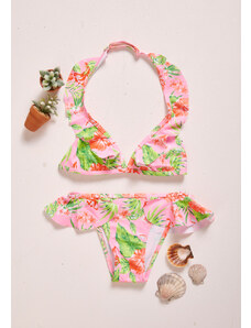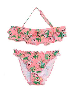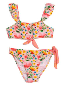 Comfort Μαγιό παιδικό σετ μπικίνι floral print με βολάν - ροζ