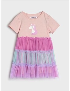 Sinsay - Βαμβακερό φόρεμα με χαμηλή μέση και κοντά μανίκια Minnie Mouse - ροζ παστελ