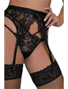 Milena Γυναικεία Ζαρτιέρα Δαντέλα με Ανοίγματα & Φιόγκους, Χρώμα: Μαύρο