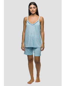 Koyote Γυναικεία καλοκαιρινή Viscose πυτζάμα ριπ με φαρδια τιράντα και βερμούδα-ΚΓ6409b