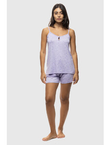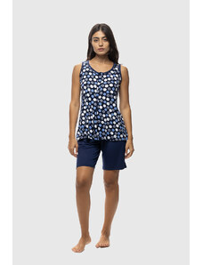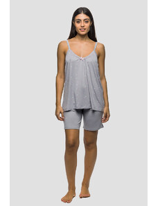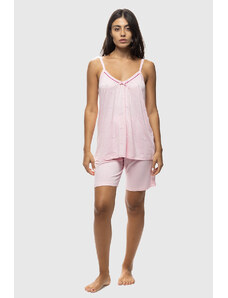 Koyote Γυναικεία καλοκαιρινή βαμβακερή πυτζάμα ριπ με λεπτή τιράντα και βερμούδα-ΚΓ6414d
