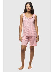 Koyote Γυναικεία καλοκαιρινή Viscose πυτζάμα ριπ με φαρδια τιράντα και βερμούδα-ΚΓ6409a