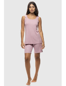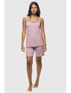 Koyote Γυναικεία καλοκαιρινή Viscose πυτζάμα ριπ με φαρδια τιράντα και βερμούδα-ΚΓ6409