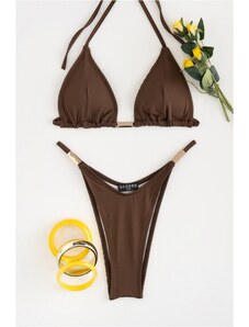 DeCoro Μαγιό Μπικίνι Τριγωνάκι Ριπ Γυαλιστερό με Κρίκους - ΜΠΡΟΝΖΕ