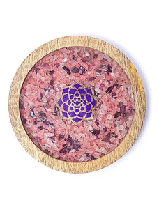 Mani - Coaster wood Lotus, rose quartz & amethyst