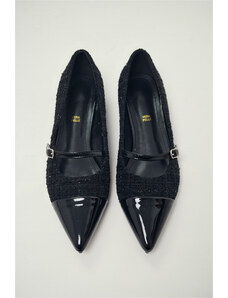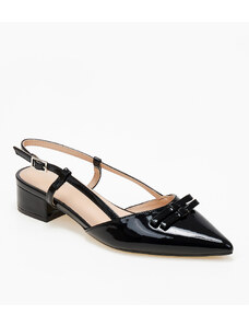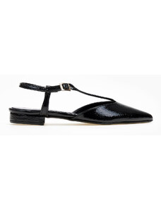 TFP Patent Pointed Ballerinas Ankle Strap - 128 - Black