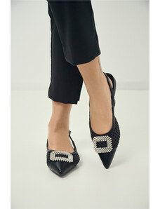 Issue Μυτερές εξώφτερνες μπαλαρίνες με πλεκτό σχέδιο και αγκράφα - Μαύρο - 032011