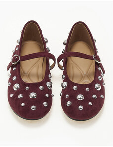 BOTEGGA 22 Mary Jane Ballet Flats Rhinestone - RY108 - Brown Suede