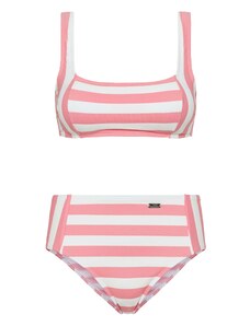 BUFFALO Τοπ μπικίνι σοκολατί / πορτοκαλί παστέλ / μαύρο / λευκό