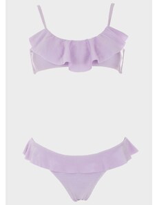 Gsecret Γυναικείο σετ μαγιό bikini μονόχρωμο μπουστάκι με βολάν σλίπ παρτό κανονική γραμμή.Καλύπτει B CUP ΛΙΛΑ