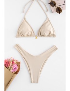 DeCoro Μαγιό Μπικίνι Τριγωνάκι Γυαλιστερό με Κορδόνια - ΕΚΡΟΥ