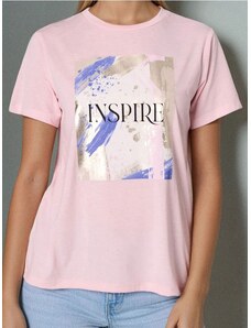 Diana D Γυναικείο Μπλουζάκι Λαιμόκοψη Χαλαρή Γραμμή Με Σχέδιο Πιέτας Ροζ