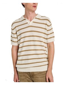 STAFF JEANS STAFF Ανδρικό κρέμ πλεκτό κοντομάνικο πικέ μπλουζάκι πόλο 64-205.055.N0000, Χρώμα Εκρού, Μέγεθος L
