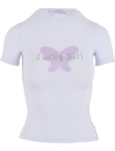 Felicious Μπλουζάκι 'Lucky Girl ' λεβάντα / ασημί / λευκό