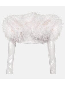 David Koma Sequined feather-trimmed crop top