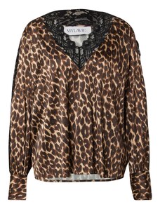 VERO MODA Μπλούζα 'VMHuxley' ανοικτό μπεζ / ανοικτό καφέ / μαύρο