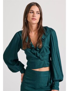 FUNKY BUDDHA Κρουαζέ τοπ σε ζακάρ ύφανση με βολάν