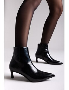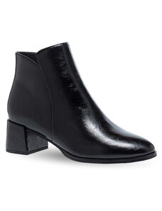 ERYNN Pointed Patent Ankle Boots with Low Heel - 00-08 - Black Crinkled Patent