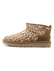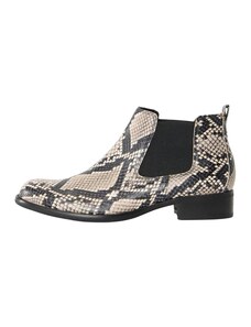 Μπεζ μποτάκια αστραγάλου animal print, με στρογγυλή μύτη