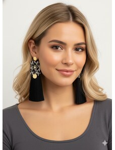My Boutique Σκουλαρίκια Γυναικεία Χειροποίητα Ethnic με Μαύρη Φούντα & Μάτι