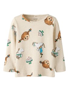 NAME IT Μπλουζάκι 'NKMVobbo' γκριζομπέζ / μαύρο / λευκό