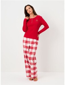 Sinsay - Εορταστική δίχρωμη καρό πιτζάμα με κεντημένο στεφάνι - κοκκινο