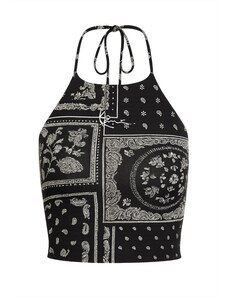 Σχεδιασμός: Γαζωμένο στρίφωμα/άκρη, Ίσιο στρίφωμα; Υλικό: Ανακυκλωμένα υλικά; Σχέδιο: Με βούλες; Είδος τιράντας: Δέσιμο στο λαιμό; Έξτρα: Σχέδιο all over, Μαλακή λαβή; Εφαρμογή: Στενή εφαρμογή; Μήκος μανικιού: Χωρίς μανίκι; Μήκος: Κοντό κόψιμο. R-0.59. P-0.2576041559. RQ-0.40