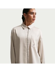 Nike Women's Oversized Satin Long-Sleeve Top - Black - Polyester