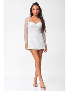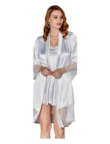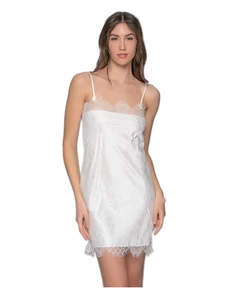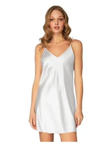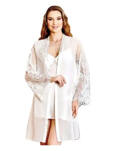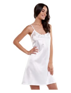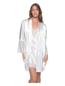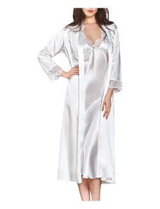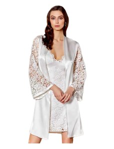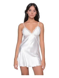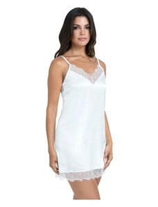 Milena Γυναικείο Νυχτικό & String Σατέν Δαντέλα Φιόγκος Plus Size, Χρώμα: Λευκό