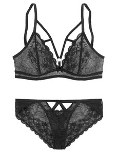 See Through Lingerie Set with Pink Straps Sophisticated transparent material!The See Through Lingerie Set with Pink Straps, Novenes from Obsessive, has a wireless bra, suspender belt and a G-string. Everything is made out of delicate black powernet with pink strap accentuation. The bra has straps over the cleavage area and a beautiful rhinestone element between the wireless cups. Bra has straps that can be adjusted to fit and it also has a hook fastener at the back as well. The beautiful suspender belt is extremely seductive, thanks to its waistband that is in a contrasting colour and the ring at the front. There is a hook fastener at the back to adjusted it. The suspender straps can also be adjusted. The matching G-string adds the finishing touch to this elegant , transparent trio. Wireless bra, suspender belt and G-string in a set Transparent powertet Pink accentuation Beautiful rhinestone element in the cleavage area Adjustable bra and suspender straps Soft & stretchy for an extremely comfortable fit Without stockings. 94% polyamide, 6% spandex.