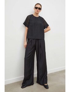 Το μαύρο παντελόνι OUI είναι ένα κομψό στοιχείο της γκαρνταρόμπας, που προσφέρει ελευθερία κινήσεων και εκλεπτυσμένη εμφάνιση. Αυτό το μοντέλο, που χαρακτηρίζεται από φαρδιά μπατζάκια και ψηλή μέση, είναι ιδανικό για τη δημιουργία casual, κομψών και glamour εμφανίσεων. Κατασκευασμένο από λεπτό ύφασμα με προσθήκη βισκόζης, εξασφαλίζει άνεση στη χρήση και δείχνει στιλάτο σε διάφορους συνδυασμούς.