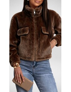 Owtwo Furry Jacket with High Collar – Γούνινο Jacket με Διακοσμητικές Τσέπες & Φερμουάρ