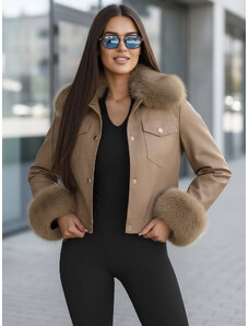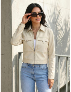 Γυναικείο δερμάτινο μπουφάν mπεζ OZONEE JS/61M8513/84Z