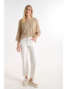 Diana D Γυναικείο Παντελόνι Regular Fit Με Ίσια Γραμμή Και Ψηλόμεσο Κόψιμο Λευκό